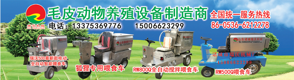 本厂自主研发的智能型毛皮动物全自动喂食车拥有多项国家专利,专利号:201320011866.3,专利号:201330006796.8,主要用于水貂、狐、貉、猪等动物日常饲料投喂的专用设备。该设备的研发成功填补了国内特种动物养殖业机械化喂食的空白,解决了养殖场效率低下、劳动力缺乏、成本居高不下及饲料浪费等问题,大大提高了工作效率、降低了劳动力成本、避免了饲料浪费。