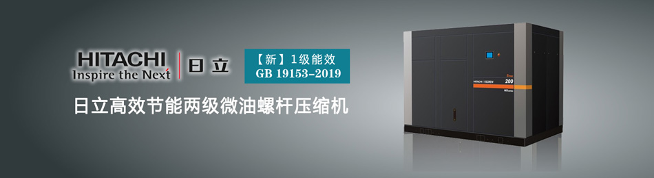 日立两级螺杆压缩机,能效等级1级,搭载日立最新形线技术转子,搭载高等级优质电机。